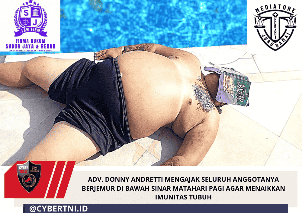 “Saya menghimbau seluruh anggota FERADI WPI, FERADI OFFICIUM NOBILLE, FERADI MEDIATORE, IKATAWAN WARTAWAN JAGAT RAYA INDONESIA ( KAWAN JARI / IWJRI ), PERKUMPULAN MASYARAKAT BERTATO INDONESIA ( PMBI ), ASS. ADV. FIRMA HUKUM SUBUR JAYA AND PARTNERS, WARTAWAN DI MEDIA WWW.KAWANJARIGRUP.COM, STAFF DAN DIREKSI PT. KAWAN JARI GRUP, agar tak lupa ditengah padatnya kesibukan kerja ber profesi baik sebagai pengacara, paralegal, mediator, asisten advokat, wartawan, aktivis penggiat organisasi kemasyarakatan agar sempatkan waktu menikmati sinar matahari pagi, dan berjemur selama 10-15 menit antara pk 8pg – 10pg idealnya.