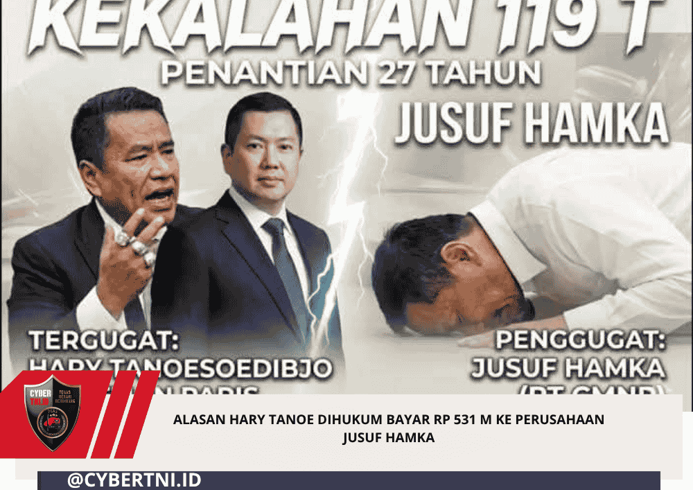 CyberTNI.id|JAKARTA,Minggu (26/4/2026) —Pengadilan Negeri Jakarta Pusat (PN Jakpus) menghukum taipan Bambang Hary Iswanto Tanoesoedibjo alias Hary Tanoe membayar ganti rugi Rp 531 miliar karena dinilai melakukan perbuatan melawan hukum.