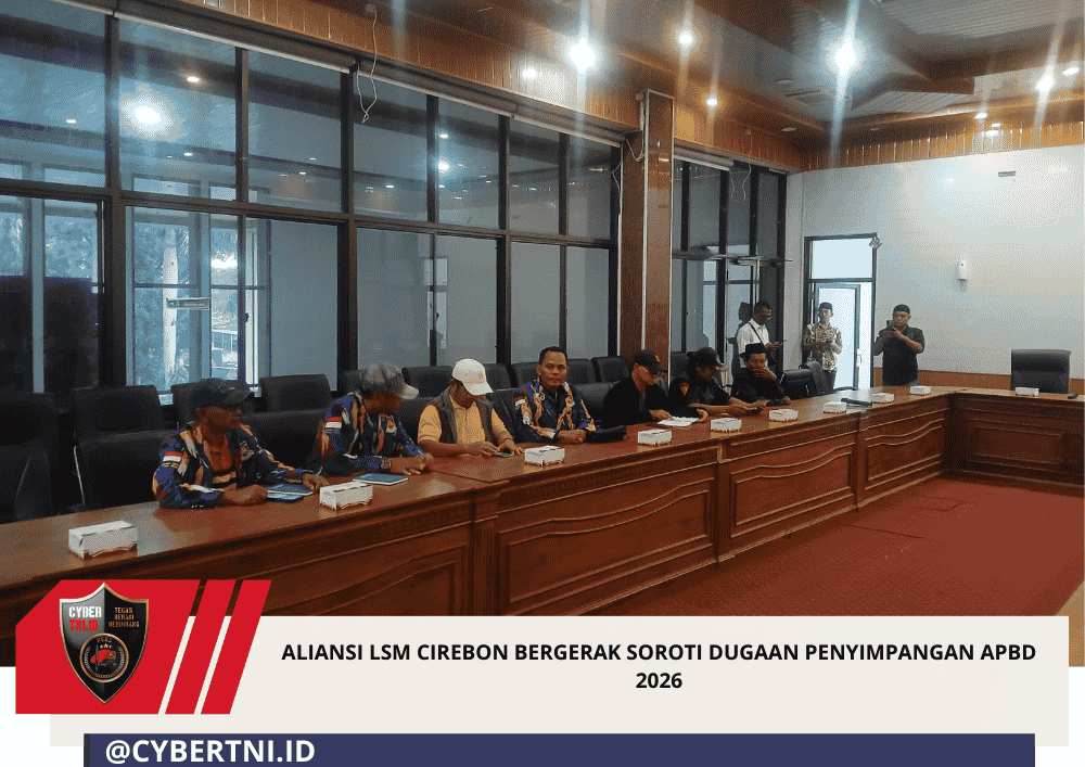 CyberTNI.id | Cirebon, 17 Februari 2026 – Aliansi LSM Cirebon Bergerak yang terdiri dari 14 ketua LSM se-Kabupaten Cirebon menyatakan keprihatinan mendalam atas informasi yang berkembang di masyarakat terkait dugaan penyimpangan Anggaran Pendapatan dan Belanja Daerah (APBD) Kabupaten Cirebon Tahun Anggaran 2026.