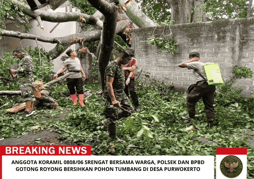 Babinsa Desa Purwokerto Sertu Eko Budi Purnomo, menyampaikan bahwa kegiatan gotong royong ini merupakan wujud kepedulian TNI bersama instansi terkait terhadap masyarakat yang terdampak bencana. “Kami bersama Polsek, BPBD, dan warga bergerak cepat untuk membersihkan pohon tumbang agar lingkungan kembali aman dan aktivitas warga bisa berjalan normal. Semoga ini bisa membantu meringankan beban warga yang terdampak,” ujarnya.