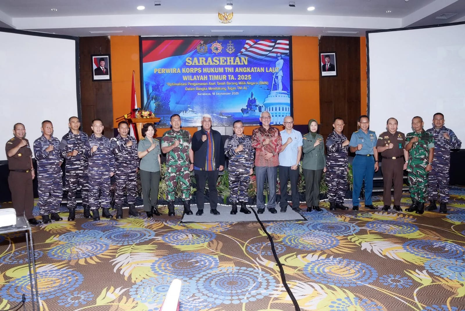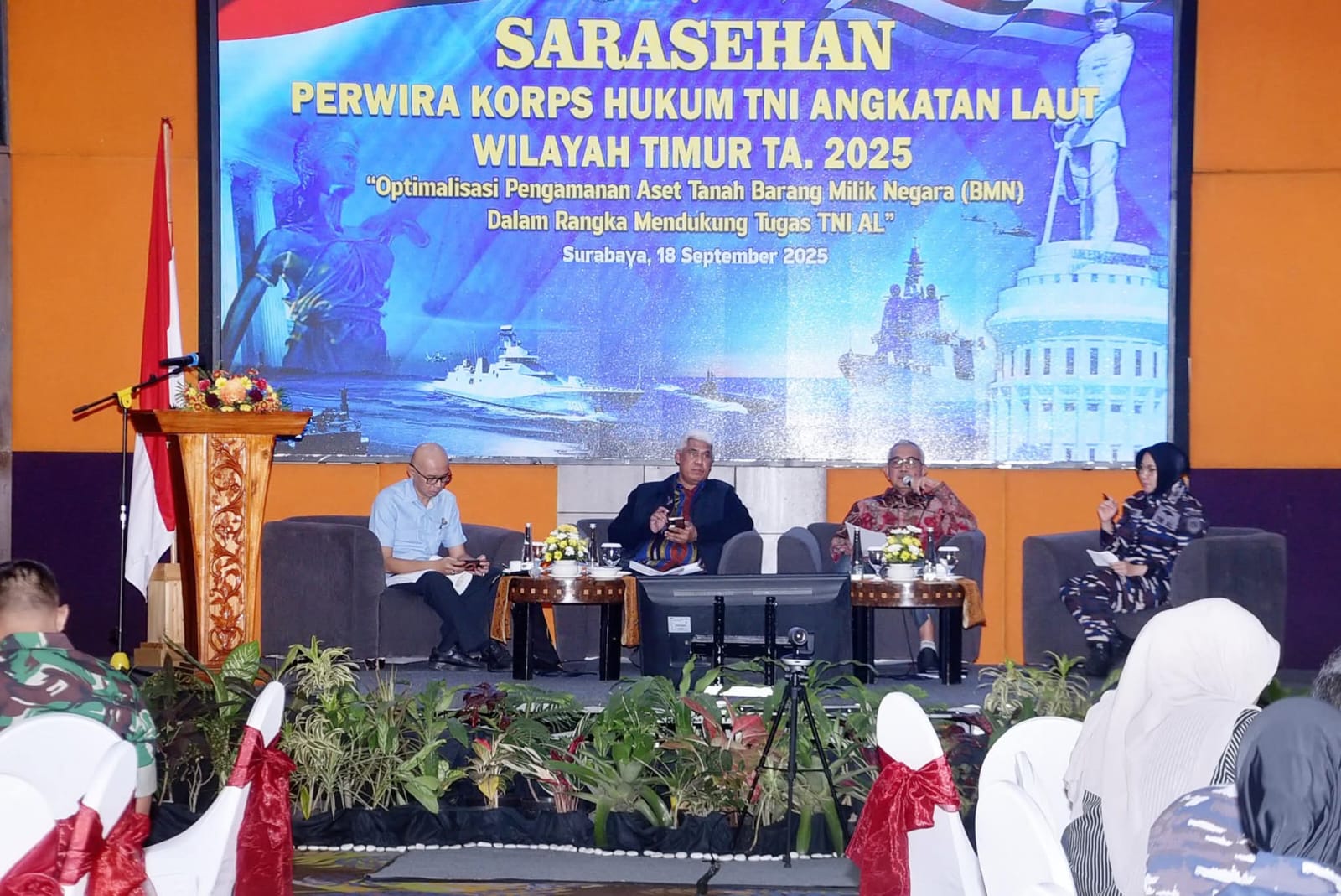 Sarasehan yang mengangkat tema “Optimalisasi Pengamanan Aset Tanah Barang Milik Negara (BMN) dalam Rangka Mendukung Tugas TNI AL” ini dibuka oleh Kepala Dinas Hukum Angkatan Laut (Kadiskumal) Laksamana Pertama TNI Dr. Ali Ridlo, S.H., M.M., M.Tr.Opsla., M.H.