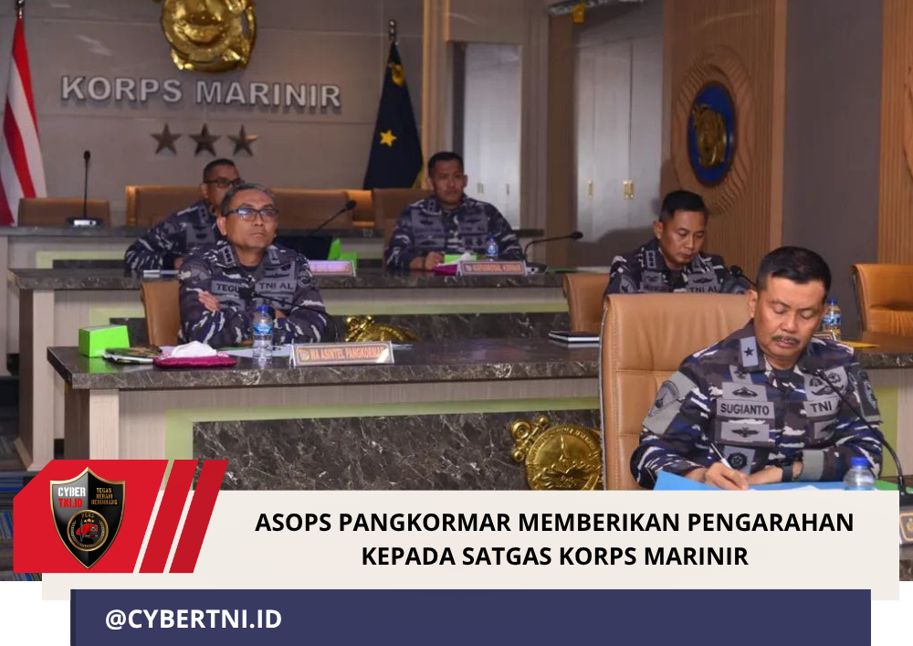 CyberTNI.id | Jakarta, Selasa 14 Oktober 2025 — Asisten Operasi Panglima Korps Marinir (Asops Pangkormar) Brigjen TNI (Mar) Sugianto, S.Sos., M.M., M.Tr.Opsla., memberikan pengarahan kepada personel Satuan Tugas (Satgas) Korps Marinir Di Ruang Rapat Puskodal Gedung Agoes Soebekti, Kesatrian Ali Sadikin, Jl. Prajurit KKO Usman dan Harun No. 40 Jakarta Pusat. Selasa (14/10/2025).
