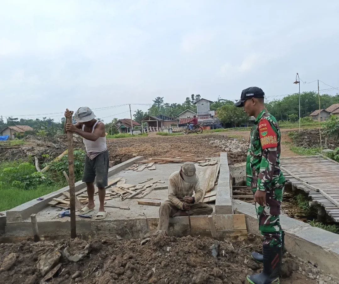 CyberTNI.id | Rawa Pitu, 26 Oktober 2025 — Babinsa Kampung Batanghari, Serda Revin Rendika, bersama masyarakat setempat melaksanakan kegiatan gotong royong pembangunan jembatan, Minggu (26/10/2025).