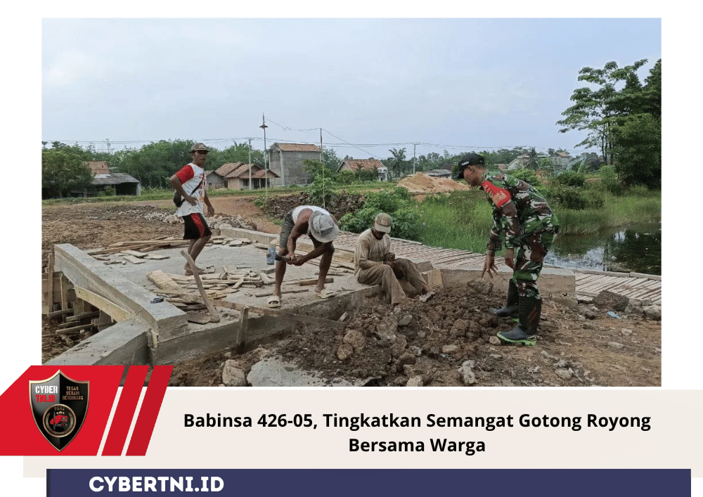 CyberTNI.id | Rawa Pitu, 26 Oktober 2025 — Babinsa Kampung Batanghari, Serda Revin Rendika, bersama masyarakat setempat melaksanakan kegiatan gotong royong pembangunan jembatan, Minggu (26/10/2025).
