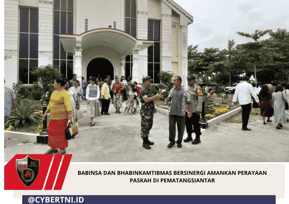 CyberTNI.id | Pematangsiantar, 5 April 2026 — Suasana khidmat dan penuh sukacita menyelimuti perayaan ibadah Paskah di Gereja HKBP Tapian Nauli, Minggu (5/4/2026). Demi memastikan kegiatan berjalan aman dan lancar, aparat kewilayahan turut hadir memberikan pengamanan.
