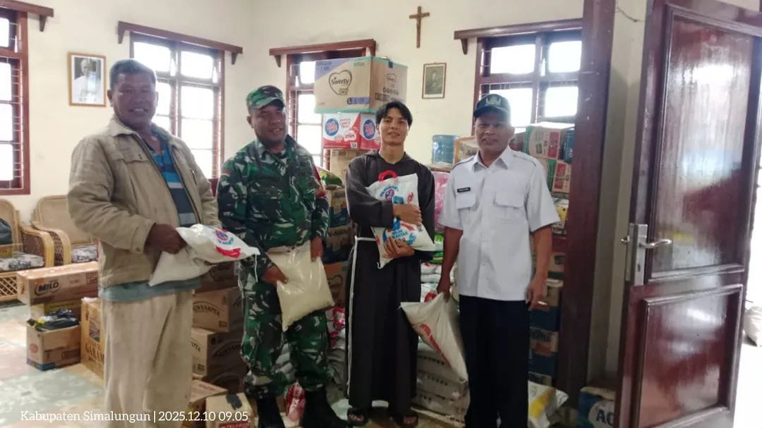 Babinsa Dan Pastor Paroki Saribudolok Bersinergi Kumpulkan Donasi Untuk Korban Bencana Tapteng