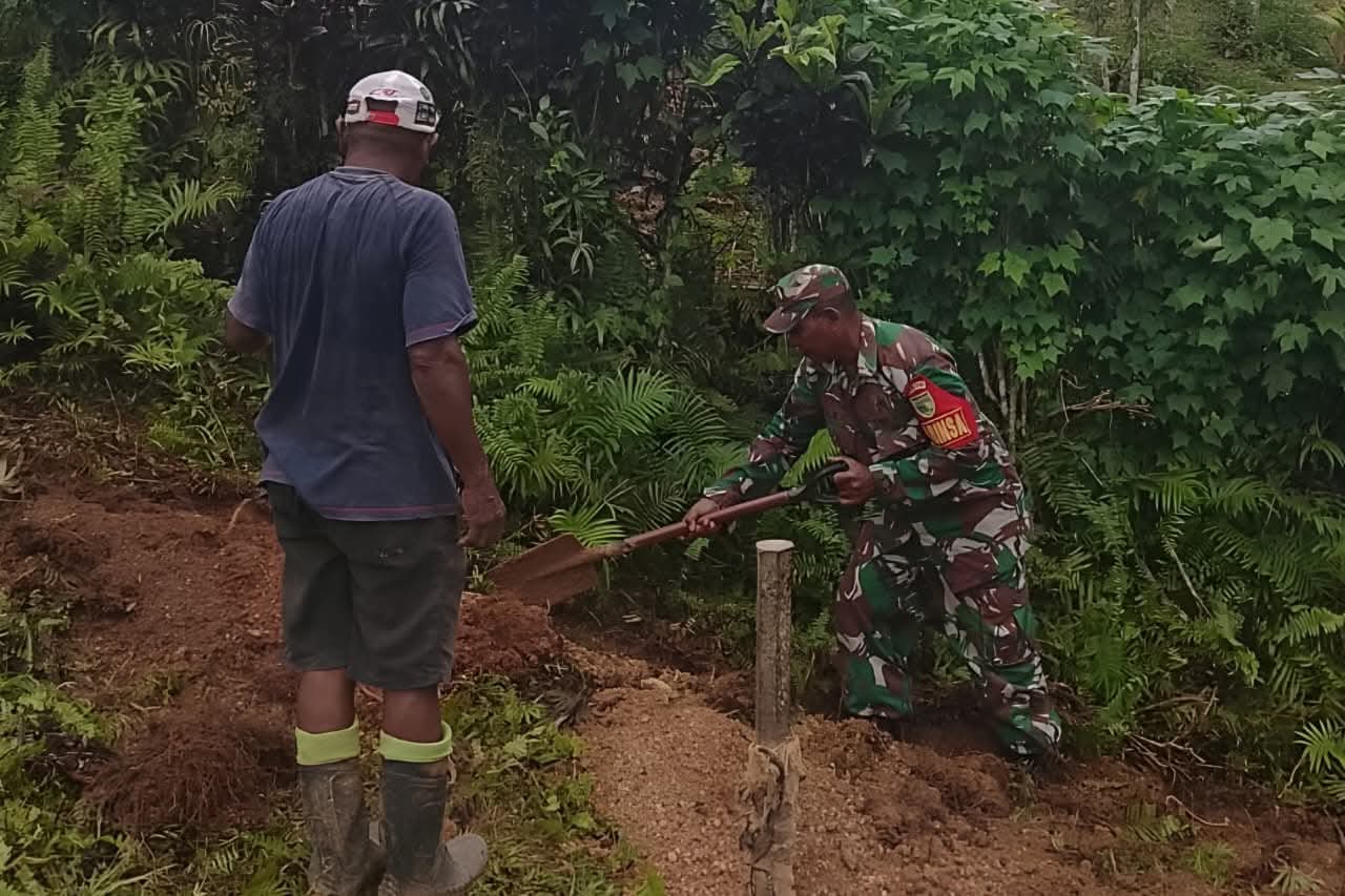 Sementara itu, Bapak Markus Abrauw, salah satu warga yang ikut bekerja, mengungkapkan rasa terima kasihnya atas perhatian dan kehadiran Babinsa di tengah masyarakat.