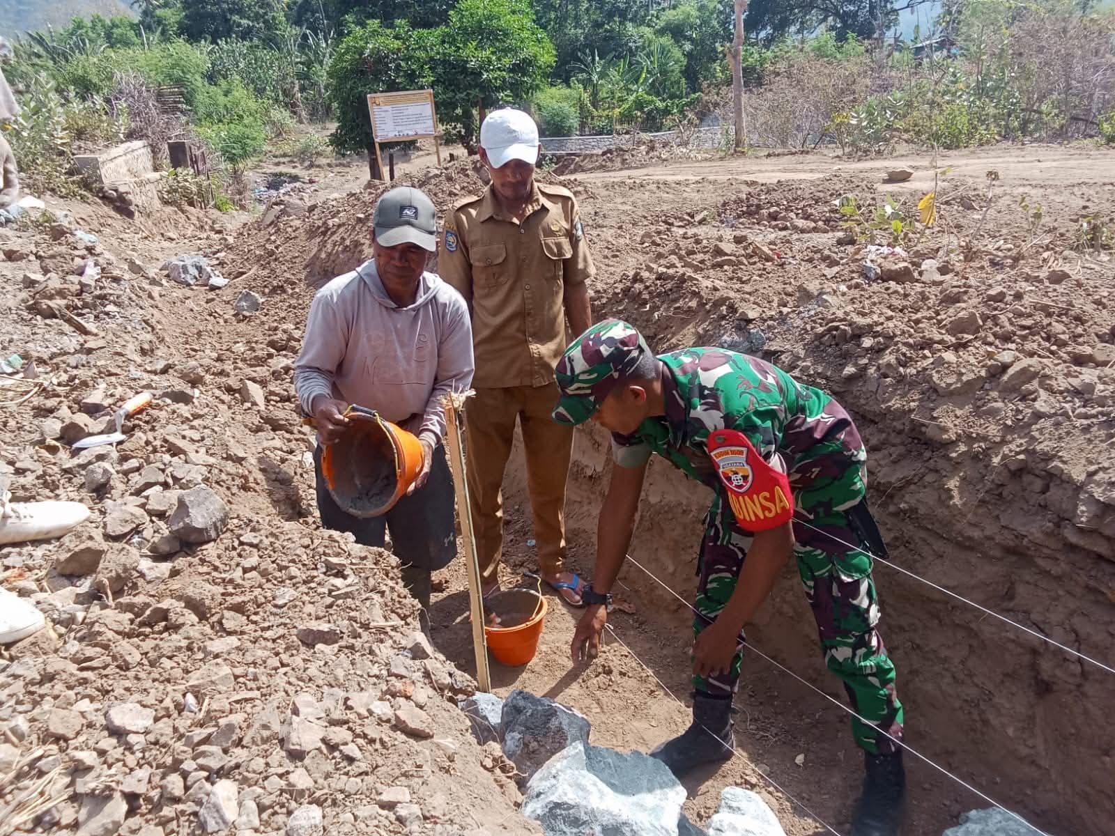 CyberTNI.id | Bima, Senin 6 Oktober 2025 – Babinsa Desa Lido Serda Israil dari Pos Ramil Belo Koramil 1608-04/Woha menghadiri kegiatan peletakan batu pertama pembangunan pagar lapangan Desa Lido, Kecamatan Belo, Kabupaten Bima. Proyek pembangunan pagar sepanjang sekitar 100 meter ini bertujuan untuk memperkuat sarana dan fasilitas desa, Senin, 6 Oktober 2025.