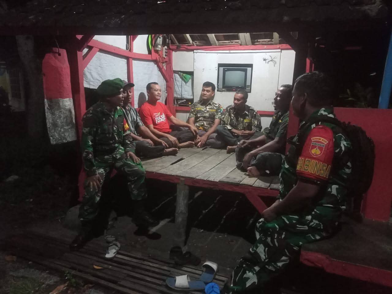 Kegiatan tersebut dilakukan sebagai bentuk kepedulian Babinsa terhadap kondisi keamanan masyarakat di wilayah binaan, sekaligus mempererat komunikasi dan kebersamaan antara TNI dan wargaDalam kesempatan itu, Sertu Sutekat memberikan imbauan kepada warga agar selalu meningkatkan kewaspadaan, terutama pada malam hari, serta menjaga sinergitas antarwarga dalam menjaga keamanan dan ketertiban lingkungan.