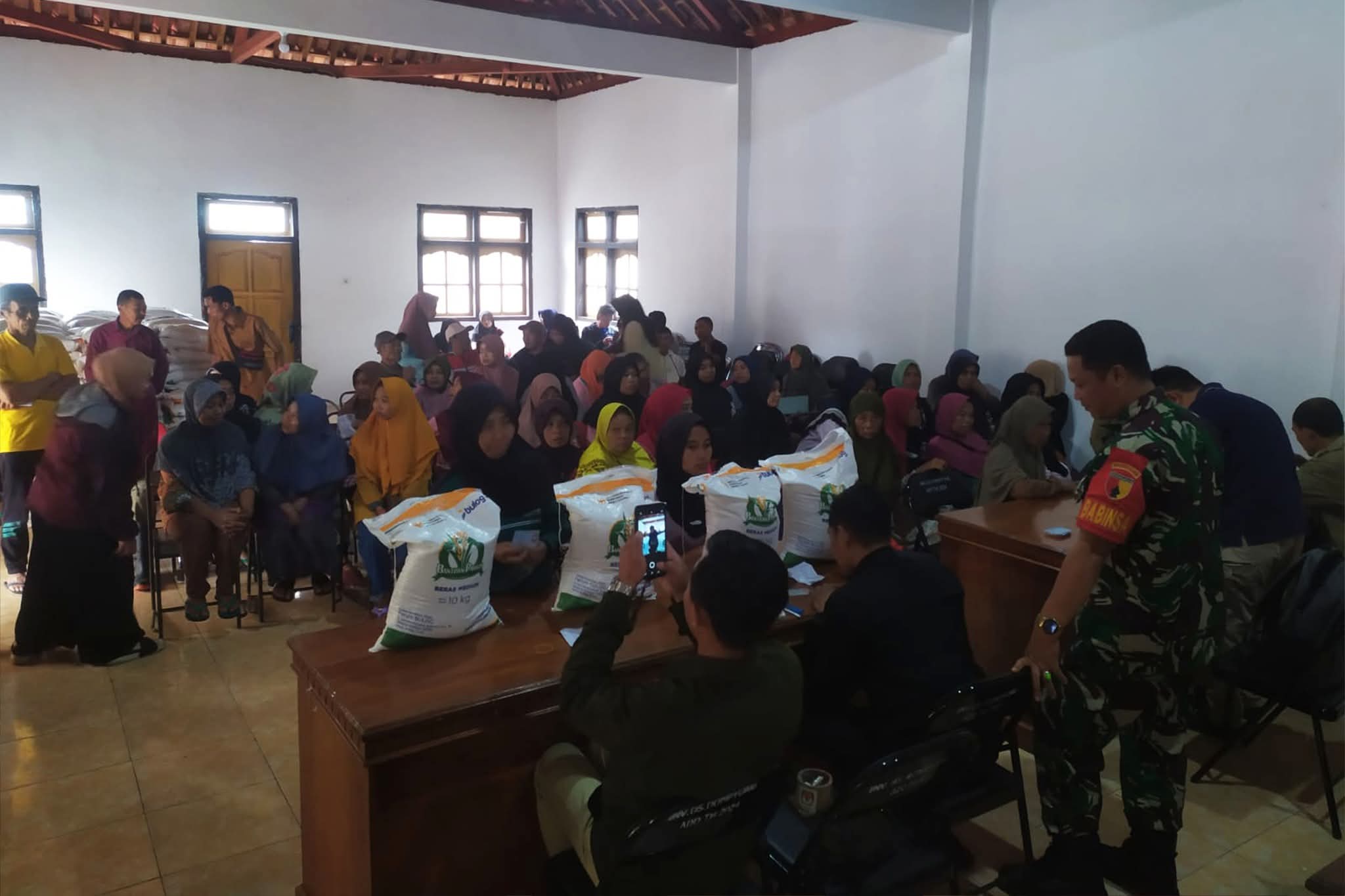 Dalam pelaksanaan kegiatan, Sertu Heri terlihat aktif berkoordinasi dengan perangkat desa, pihak Bulog, serta aparat kepolisian guna memastikan penyaluran bantuan tepat sasaran tanpa hambatan teknis.