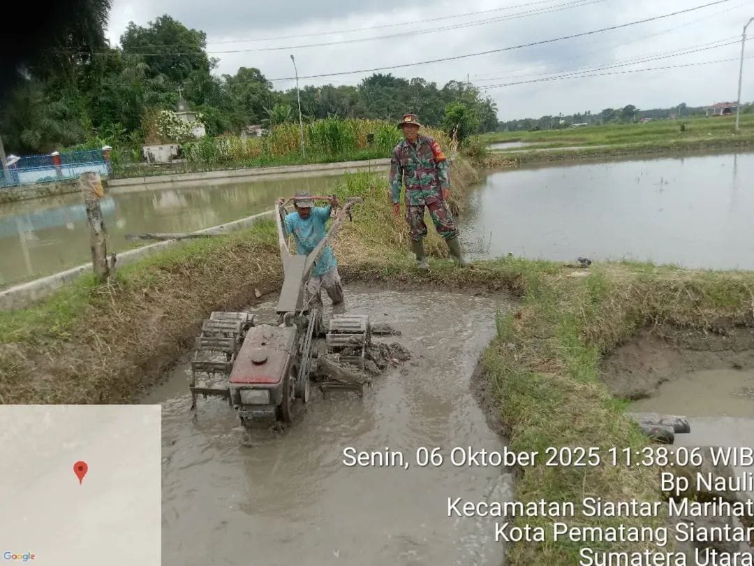 Kegiatan tersebut berlangsung di area persawahan Dusun Sukaslamat, Kelurahan Bahapal Nauli, Kecamatan Siantar Marihat, Kota Pematang Siantar. Sertu D. Sirait turut membantu proses pengolahan lahan yang akan digunakan untuk masa tanam berikutnya.