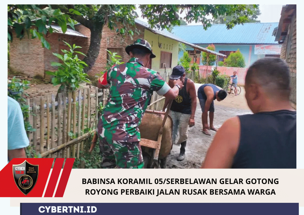 CyberTNI.id | Simalungun, 29 Oktober 2025 — Dalam upaya membantu masyarakat dan menjaga semangat kebersamaan, Babinsa Koramil 05/Serbelawan, Kodim 0207/Simalungun, Sertu Bambang, melaksanakan kegiatan gotong royong bersama warga untuk memperbaiki akses jalan yang rusak akibat curah hujan tinggi di wilayah Nagori Dolok Ulu, Kecamatan Tapian Dolok, Kabupaten Simalungun, pada Rabu (29/10/2025) pukul 10.45 WIB.