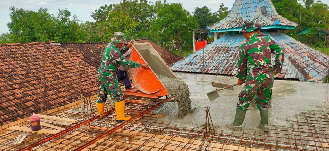CyberTNI.id | BLORA, Rabu 8 Oktober 2025 – Semangat kebersamaan dan kepedulian terhadap masyarakat kembali ditunjukkan oleh Babinsa Koramil 10/Kradenan, Kodim 0721/Blora, Serka Sunyoto. Bersama warga Desa Nginggil, Kecamatan Kradenan, ia bergotong royong melaksanakan pengecoran lantai atas tempat ibadah setempat, Rabu (8/10/2025).