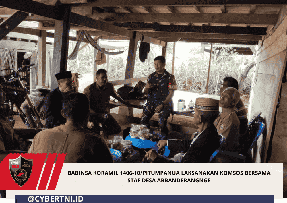 CyberTNI.id | Wajo — Babinsa Koramil 1406-10/Pitumpanua Serda Amiruddin melaksanakan kegiatan komunikasi sosial (Komsos) Bersama Staf Desa Abbanderangnge, Kecamatan Pitumpanua, Kabupaten Wajo, Jumat (10/4/2026).