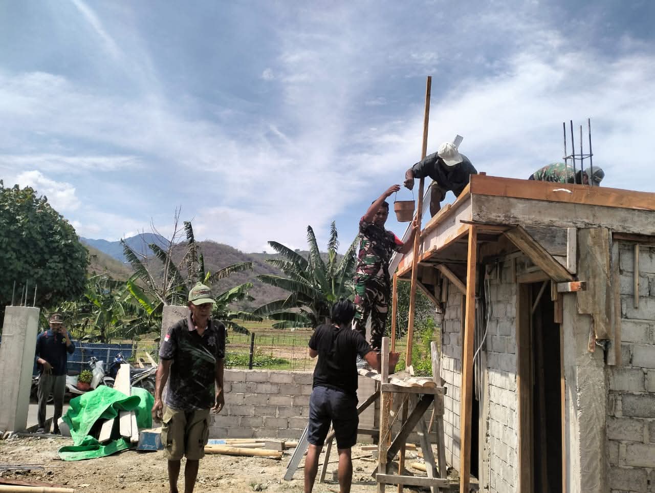 CyberTNI.id | Palibelo, Bima, Kamis 9 Oktober 2025 – Babinsa Desa Ntonggu Koramil 1608-04/Woha, Sertu Adhamuddin, bersama masyarakat melaksanakan kegiatan gotong royong pengecoran Mushola Al Mubarok yang berlokasi di Desa Ntonggu, Kecamatan Palibelo, Kabupaten Bima, Kamis 9 Oktober 2025.