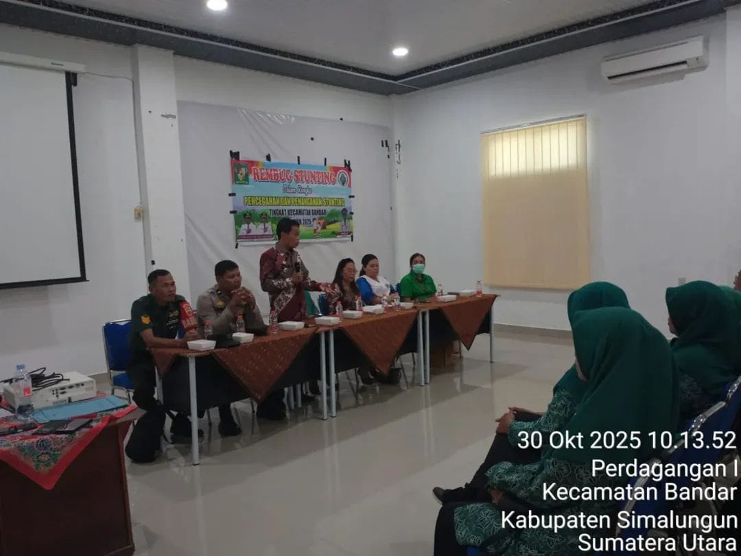 CyberTNI.id | Simalungun, 30 Oktober 2025 — Dalam upaya bersama menurunkan angka stunting dan meningkatkan kualitas kesehatan masyarakat, Babinsa Koramil 06/Perdagangan Kodim 0207/Simalungun, Serma Untung, hadir mewakili Danramil dalam kegiatan Rapat Rembuk Stunting yang digelar di Ruang Harungguan Kecamatan Bandar, Kabupaten Simalungun, Kamis (30/10/2025).