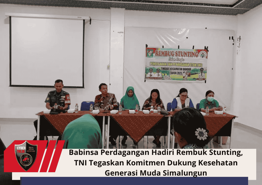 CyberTNI.id | Simalungun, 30 Oktober 2025 — Dalam upaya bersama menurunkan angka stunting dan meningkatkan kualitas kesehatan masyarakat, Babinsa Koramil 06/Perdagangan Kodim 0207/Simalungun, Serma Untung, hadir mewakili Danramil dalam kegiatan Rapat Rembuk Stunting yang digelar di Ruang Harungguan Kecamatan Bandar, Kabupaten Simalungun, Kamis (30/10/2025).