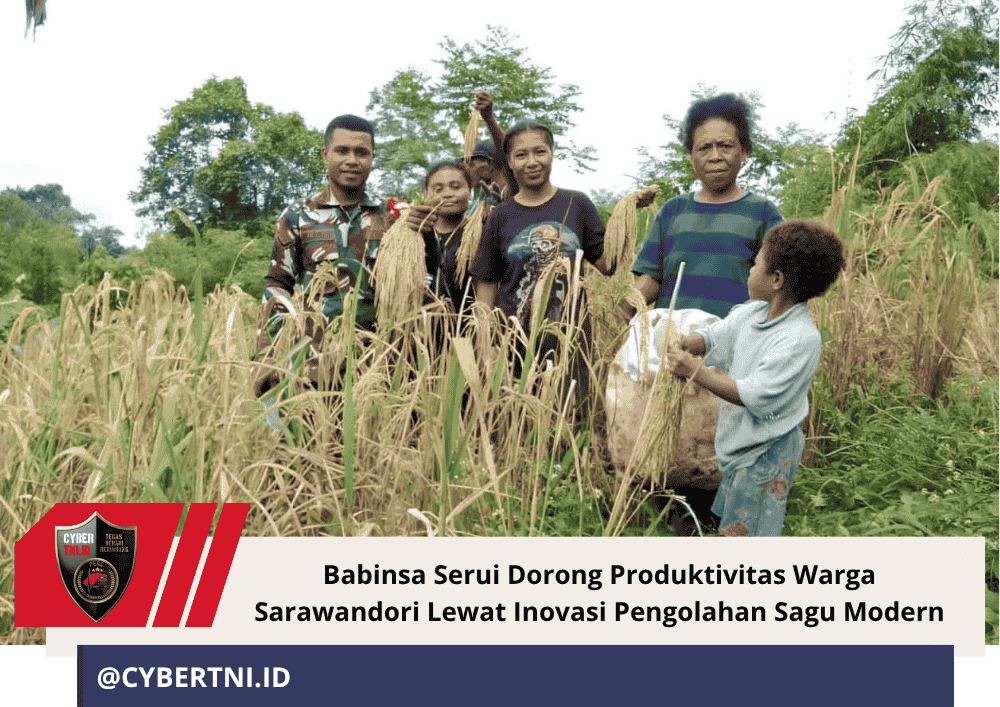 CyberTNI.id | Yapen, Jumat 17 Oktober 2025 — Wujud nyata kepedulian TNI terhadap kesejahteraan masyarakat kembali terlihat di Kabupaten Kepulauan Yapen. Babinsa Koramil 1709-01/Serui, Koptu Aan Kurniawan, turun langsung membantu warga Kampung Sarawandori 2, Distrik Kosiwo, dalam kegiatan pengolahan sagu modern untuk meningkatkan nilai ekonomi hasil pangan lokal, Jumat (17/10/2025).