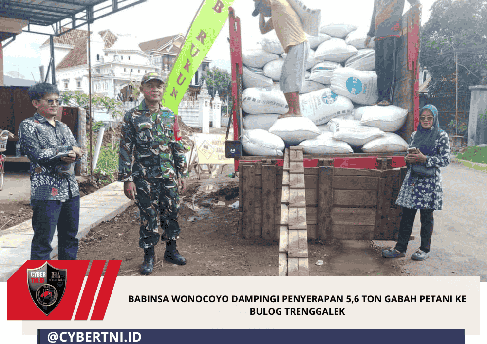 CyberTNI.id | Trenggalek – Komitmen mendukung ketahanan pangan nasional terus diwujudkan melalui pendampingan langsung kepada petani di wilayah pedesaan. Babinsa Wonocoyo Sertu Aminudin, anggota Koramil 0806-02/Pogalan jajaran Kodim 0806/Trenggalek, melaksanakan pendampingan kegiatan serapan gabah petani (Sergap) bersama petugas Bulog Trenggalek di Kelompok Tani (Poktan) Tani Widodo, RT 05 RW 03 Dusun Wonocoyo, Desa Wonocoyo, Kecamatan Pogalan, Kabupaten Trenggalek, Jumat (27/3/2026).