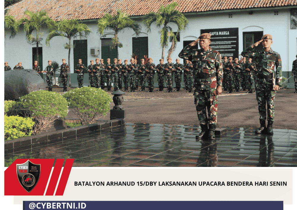 CyberTNI.id | Semarang – Batalyon Arhanud 15/DBY melaksanakan upacara bendera hari Senin yang berlangsung di Makoyon. Kegiatan rutin mingguan ini diikuti oleh seluruh prajurit Batalyon Arhanud 15/DBY yang terdiri dari Perwira, Bintara, dan Tamtama dengan penuh disiplin dan khidmat. Senin (06/04/2026).