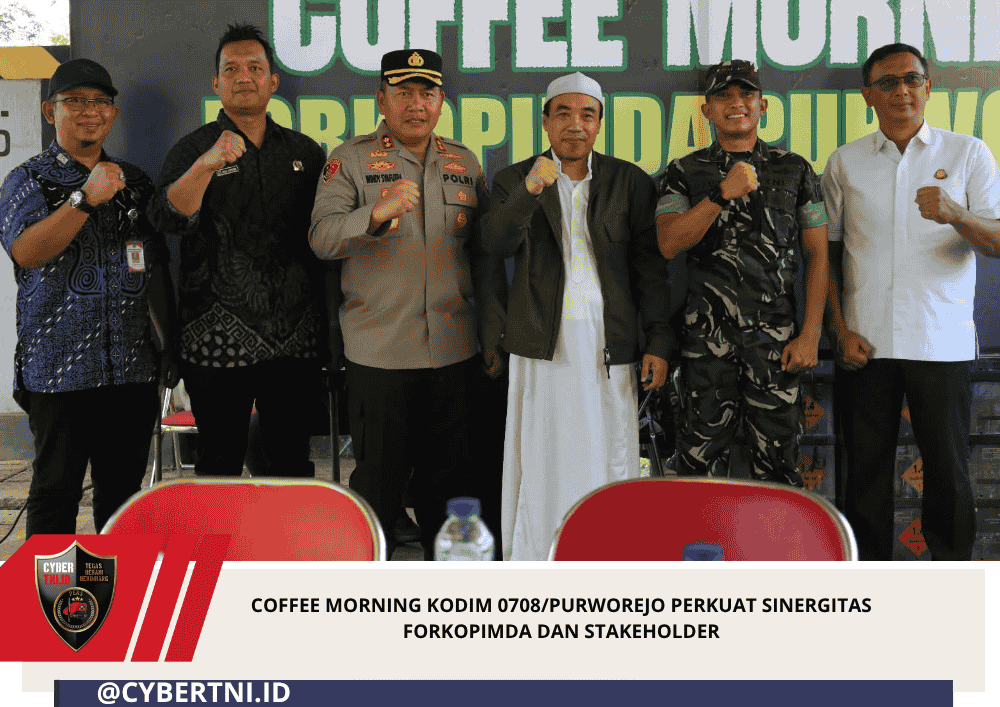 CyberTNI.id | Purworejo – Kodim 0708/Purworejo menggelar kegiatan Coffee Morning bersama Forum Koordinasi Pimpinan Daerah (Forkopimda) Kabupaten Purworejo, Kamis (23/4/2026), bertempat di Halaman Yonif 412/BES. Kegiatan ini menjadi ajang silaturahmi sekaligus sarana mempererat sinergitas antar unsur pemerintahan, aparat keamanan, serta seluruh stakeholder di wilayah Kabupaten Purworejo.