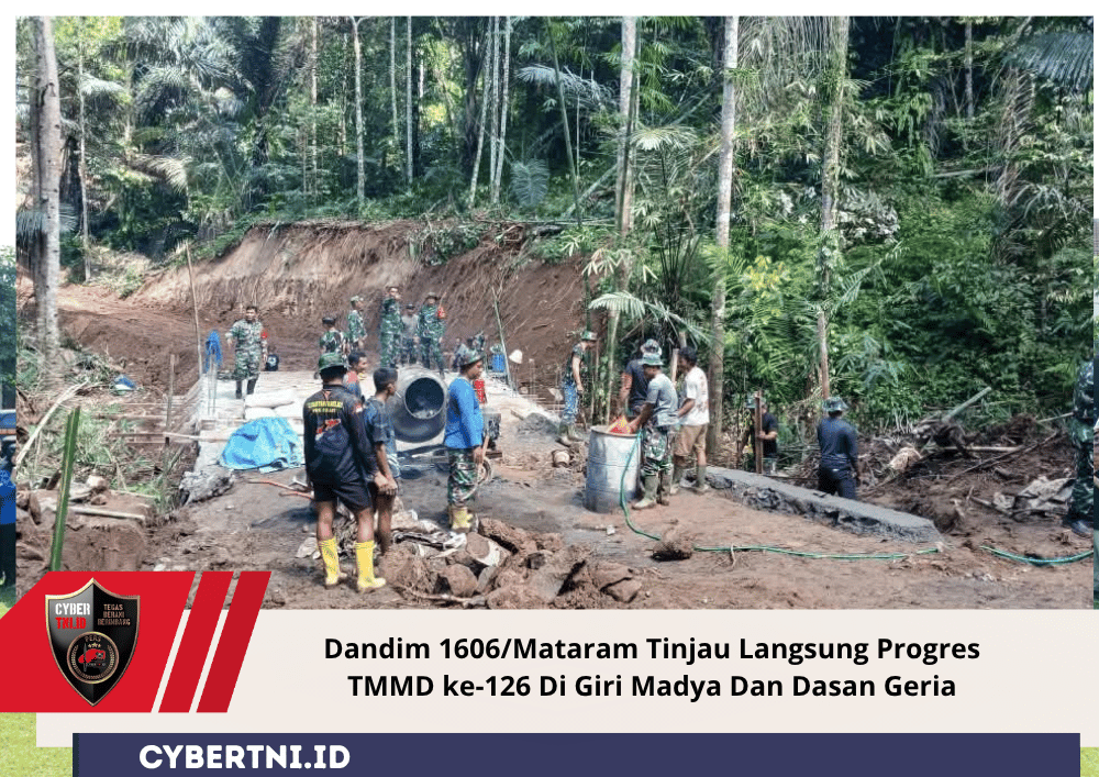 CyberTNI.id | Lombok Barat, Jumat 24 Oktober 2025 — Komandan Kodim 1606/Mataram, Kolonel Inf Nyarman, M.Tr.(Han)., meninjau langsung lokasi pengerjaan TNI Manunggal Membangun Desa (TMMD) ke-126 di Dusun Kebun Baru, Desa Giri Madya, dan Dasan Geria, Kecamatan Lingsar, Kabupaten Lombok Barat. Kunjungan ini dilakukan untuk memastikan hasil kerja lapangan selama ±45 hari berjalan sesuai target dan memberikan manfaat nyata bagi masyarakat, Jum’at (24/10/2025).