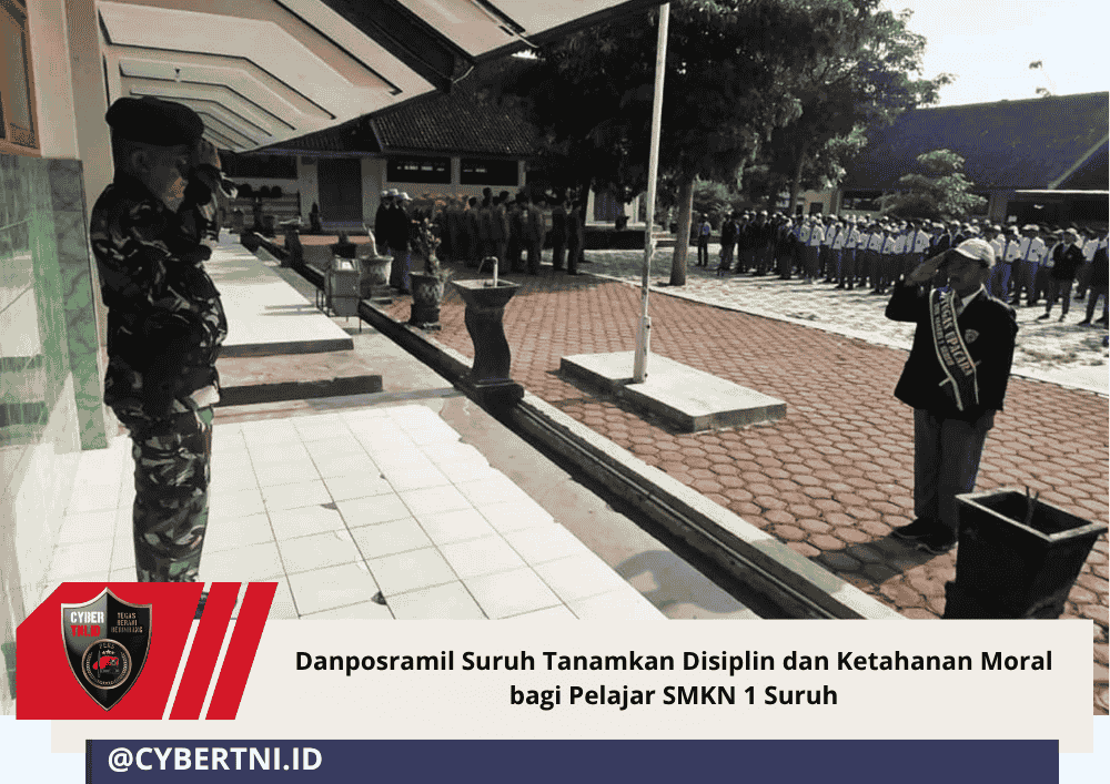 CyberTNI.id | Trenggalek, Senin 20 Oktober 2025 – Menyikapi semakin kompleksnya tantangan generasi muda di era digital, Danposramil 0806/Suruh Peltu Eko Pujianto memimpin langsung upacara bendera di SMKN 1 Suruh, Kecamatan Suruh, Kabupaten Trenggalek, Senin (20/10/2025). Upacara berlangsung khidmat sejak pukul 07.00 WIB dengan partisipasi penuh para siswa dan tenaga pendidik.