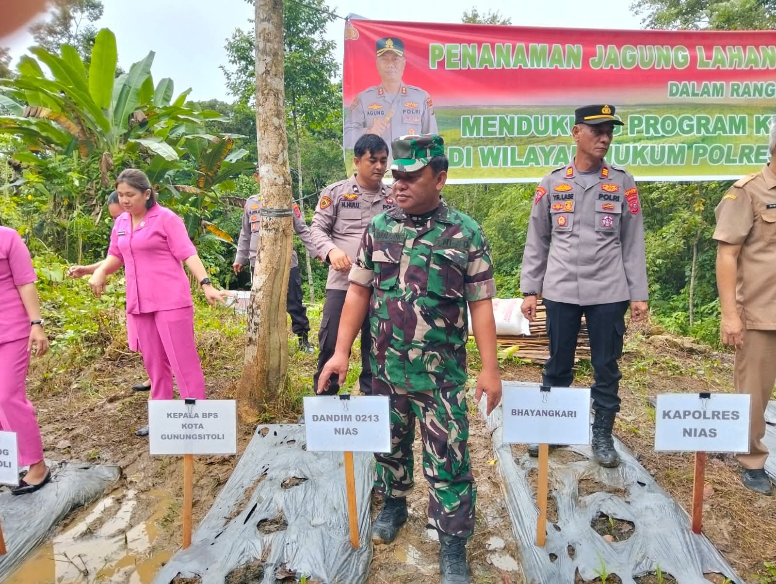 Danramil 01/GS Hadiri Kegiatan Penanaman Jagung Bersama Polres Nias Di Desa Tumori