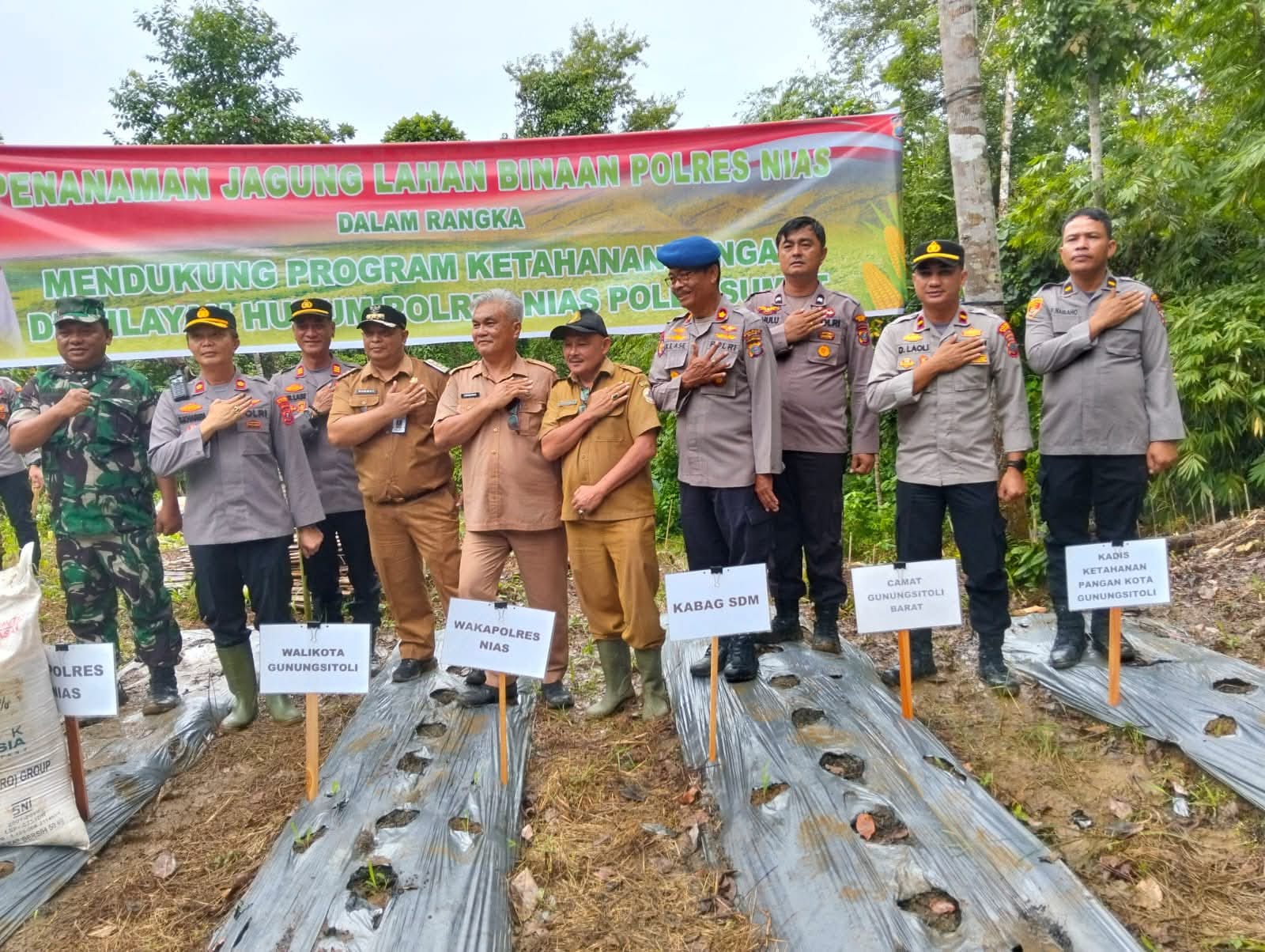 Danramil 01/GS Hadiri Kegiatan Penanaman Jagung Bersama Polres Nias Di Desa Tumori