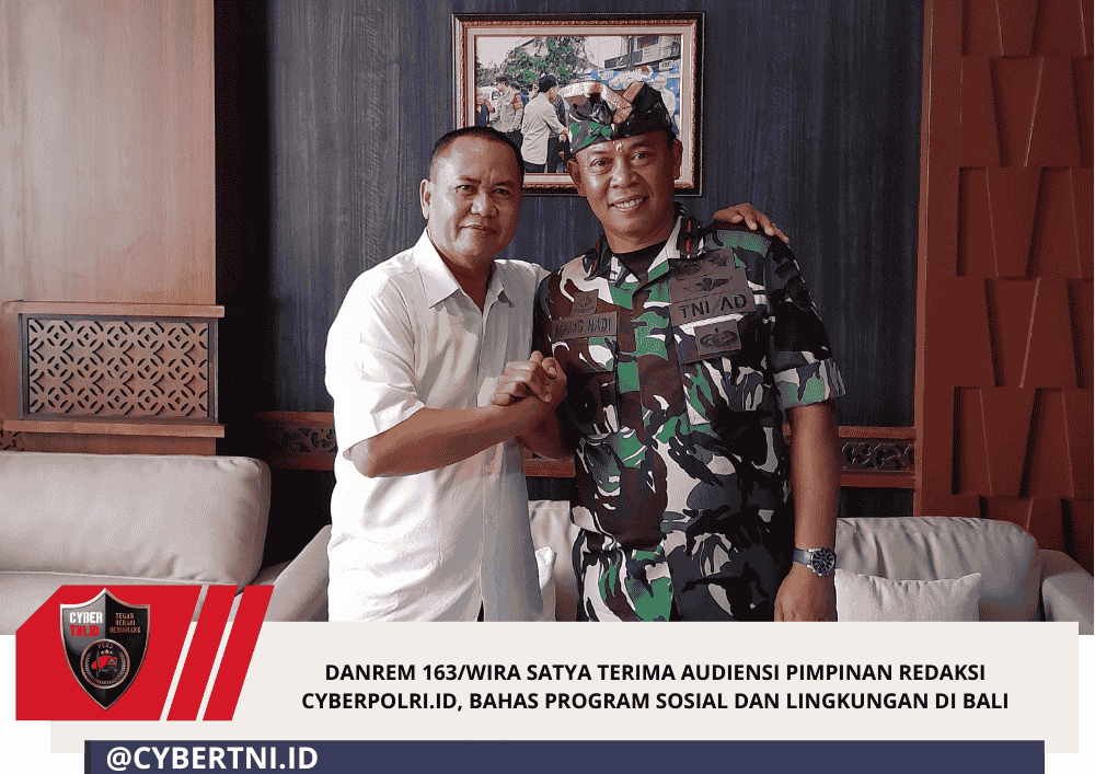 CyberTNI.id | Denpasar, Bali – Redaksi Cyberpolri.id, Arden Suhadi C.PM., C.PFW., C.MDF., C.JKJ, melakukan audiensi dengan Komandan Korem 163/Wira Satya, Brigadir Jenderal TNI Ida I Dewa Agung Hadisaputra, pada Jumat sekitar pukul 13.00 WIB di Markas Korem 163/Wira Satya, Denpasar, Bali.