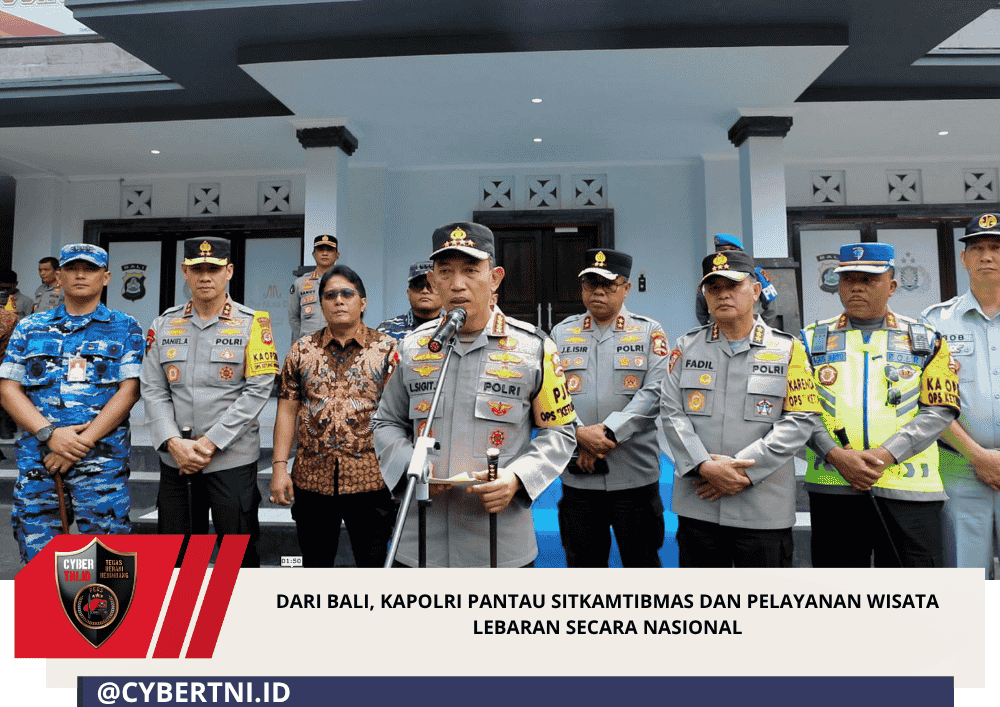 CyberTNI.id | Bali — Kapolri, Jenderal Polisi Drs. Listyo Sigit Prabowo, M.Si., menyapa sekaligus memberikan arahan dan evaluasi perkembangan Sitkamtibmas kepada jajaran Polda di seluruh wilayah Indonesia secara daring dalam rangka pelayanan perayaan Idul Fitri 1447 H pada obyek-obyek wisata.