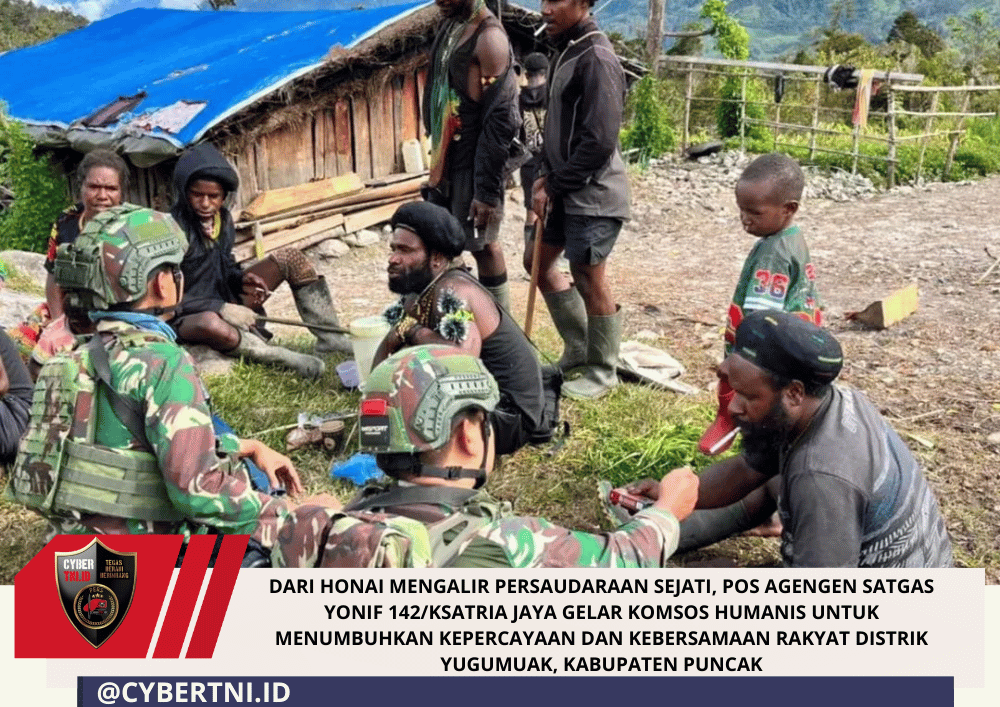 CyberTNI.id | Yugumuak, Papua — Di tengah sejuknya udara pegunungan dan hangatnya kebersamaan masyarakat, personel Pos Agengen Satgas Yonif 142/Ksatria Jaya melaksanakan kegiatan Komunikasi Sosial (Komsos) dengan mengunjungi honai-honai warga di Distrik Yugumuak, Kabupaten Puncak.