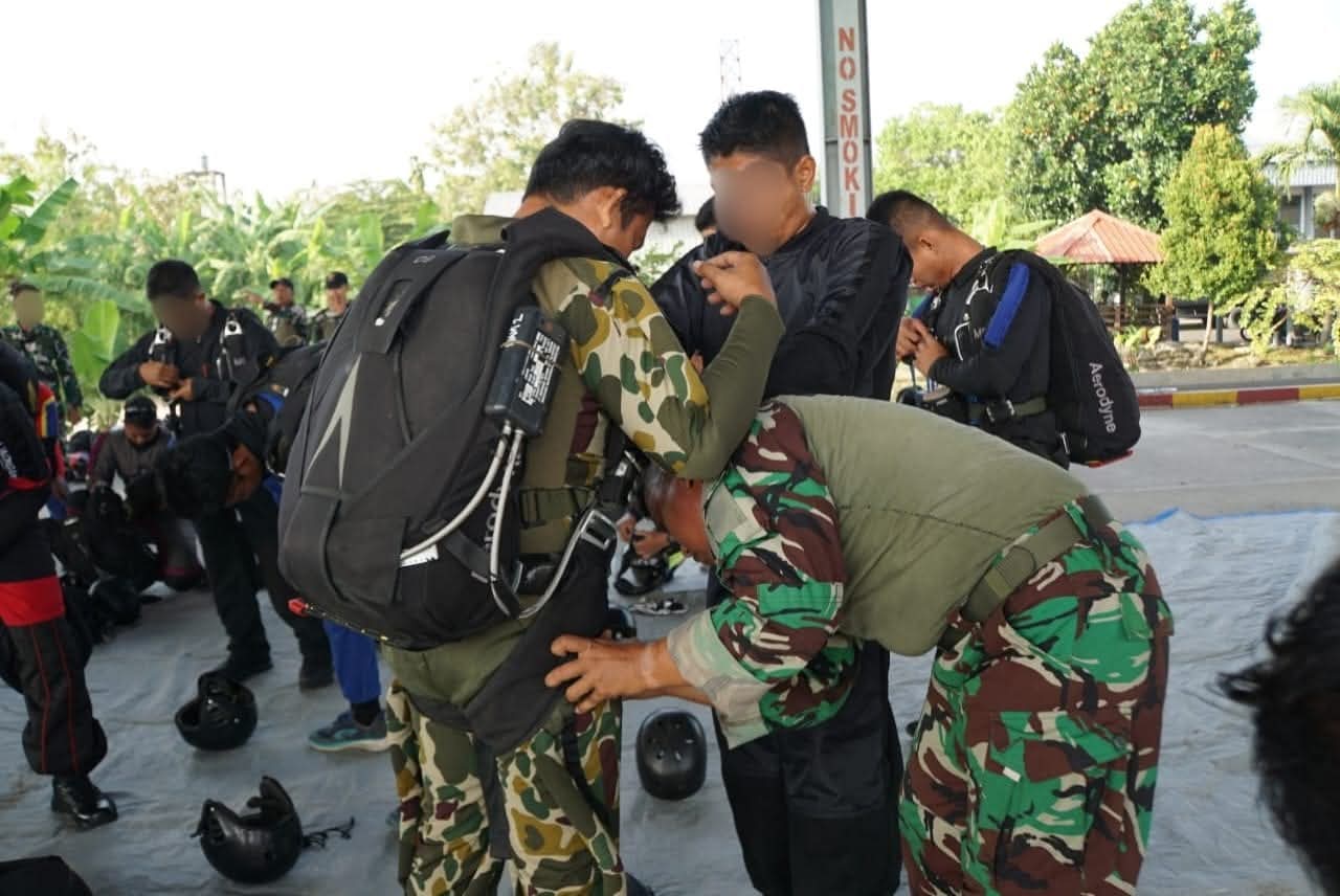 Kegiatan diawali dengan pemeriksaan kesehatan para peterjun untuk memastikan kesiapan fisik dan mental seluruh personel. Setelah itu dilanjutkan dengan pemanasan, ground training, serta penyampaian materi penerjunan dan prosedur keamanan oleh Jumping Master Letda Marinir Abdul Kiron.