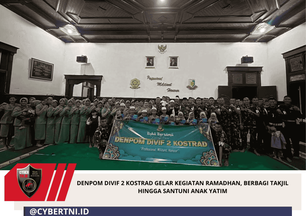 CyberTNI.id | Lawang – Detasemen Polisi Militer Divisi Infanteri 2 Kostrad menggelar rangkaian kegiatan sosial dan keagamaan dalam rangka mengisi bulan suci Ramadhan, mulai dari pembagian takjil, buka puasa bersama, hingga pemberian santunan kepada anak yatim. Senin (9/03/2026).