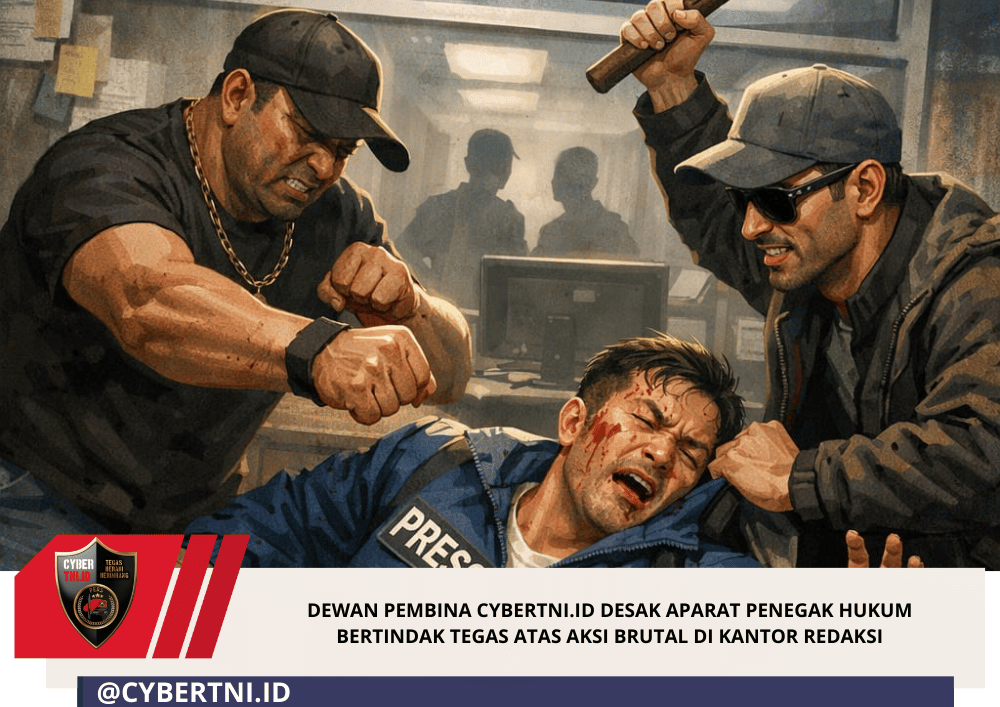 CyberTNI.id | Jombang, 24 Februari 2026 — Tindakan arogansi dan penganiayaan yang terjadi di dalam kantor Redaksi media cyberTNI.id menuai kecaman keras dari Dewan Pembina beserta seluruh jajaran redaksi. Insiden yang dilakukan oleh oknum preman terhadap salah satu anggota redaksi tersebut dinilai bukan sekadar tindak kekerasan biasa, melainkan bentuk nyata pelecehan terhadap kebebasan pers dan ancaman terhadap marwah demokrasi.