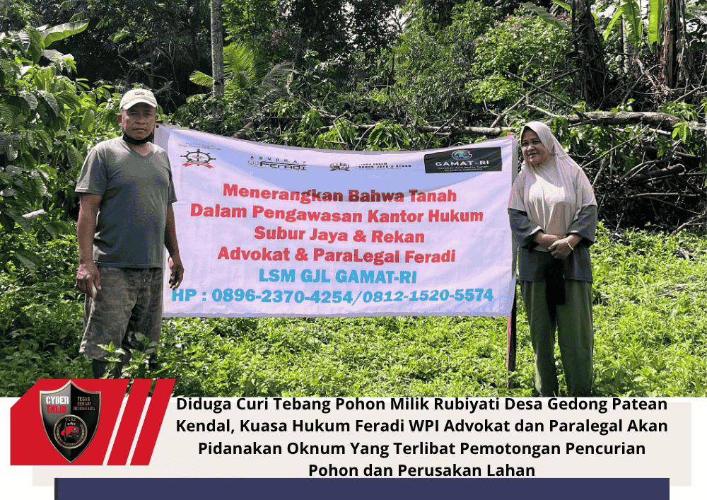 Diduga Curi Tebang Pohon Milik Rubiyati Desa Gedong Patean Kendal, Kuasa Hukum Feradi WPI Advokat dan Paralegal Akan Pidanakan Oknum Yang Terlibat Pemotongan Pencurian Pohon dan Perusakan Lahan