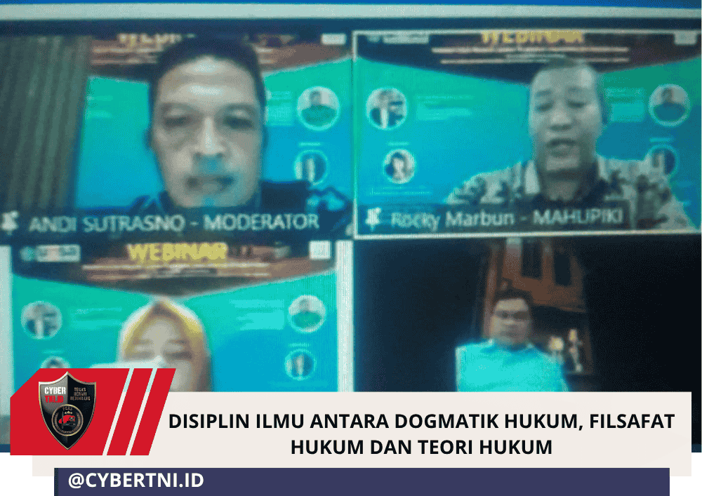 CyberTNI.id | JAKARTA,Sabtu (18/10/2025) —Dalam kerangka ilmu hukum, terdapat tiga cabang utama yang saling berkaitan namun memiliki fokus dan pendekatan berbeda, yaitu dogmatik hukum, filsafat hukum, dan teori hukum.