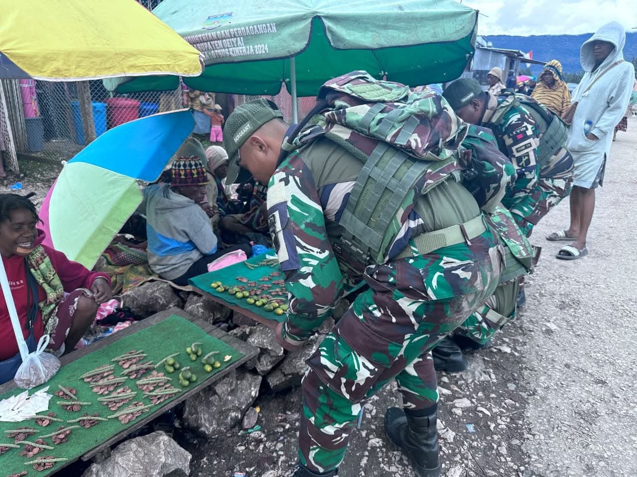 Senyum tulus para pedagang menyambut kehadiran prajurit menjadi gambaran nyata ikatan yang terjalin antara TNI dan masyarakat Papua. Hubungan yang harmonis ini sekaligus memperkuat semangat gotong royong dan kebersamaan dalam menjaga stabilitas serta kemajuan wilayah.