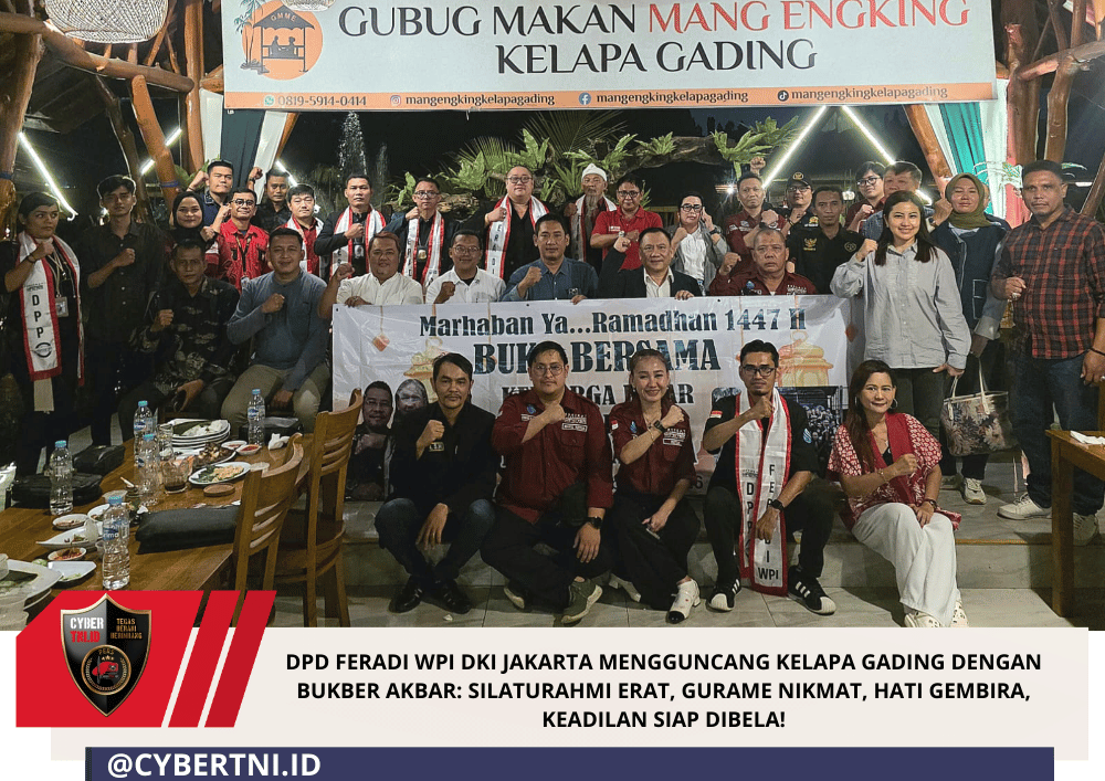 CyberTNI.id | Jakarta – Gempa bumi melanda Kelapa Gading pada 21 Februari 2026! Bukan gempa bumi sungguhan, tapi gempa bumi kebahagiaan dan keakraban yang disebabkan oleh acara buka puasa bersama DPD FERADI WPI DKI Jakarta! Acara yang digelar di Resto Gubug Makan Mang Engking Kelapa Gading ini sukses memukau seluruh jagat raya dan membuktikan bahwa DPD FERADI WPI DKI Jakarta adalah organisasi advokat yang bukan kaleng-kaleng, tapi berlian yang berkilauan!