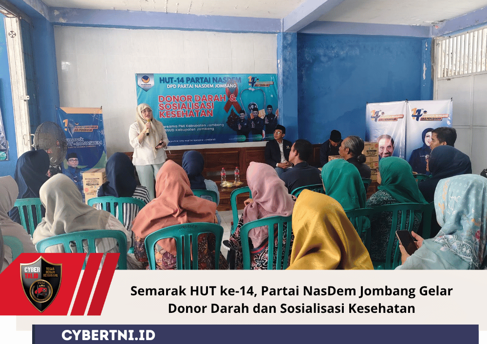 CyberTNI.id | Senin, 20 Oktober 2025 — Dalam rangka memperingati Hari Ulang Tahun (HUT) ke-14 Partai NasDem, DPD Partai NasDem Kabupaten Jombang menggelar kegiatan donor darah dan sosialisasi kesehatan di kantor DPD, pada Senin, 20 Oktober 2025.