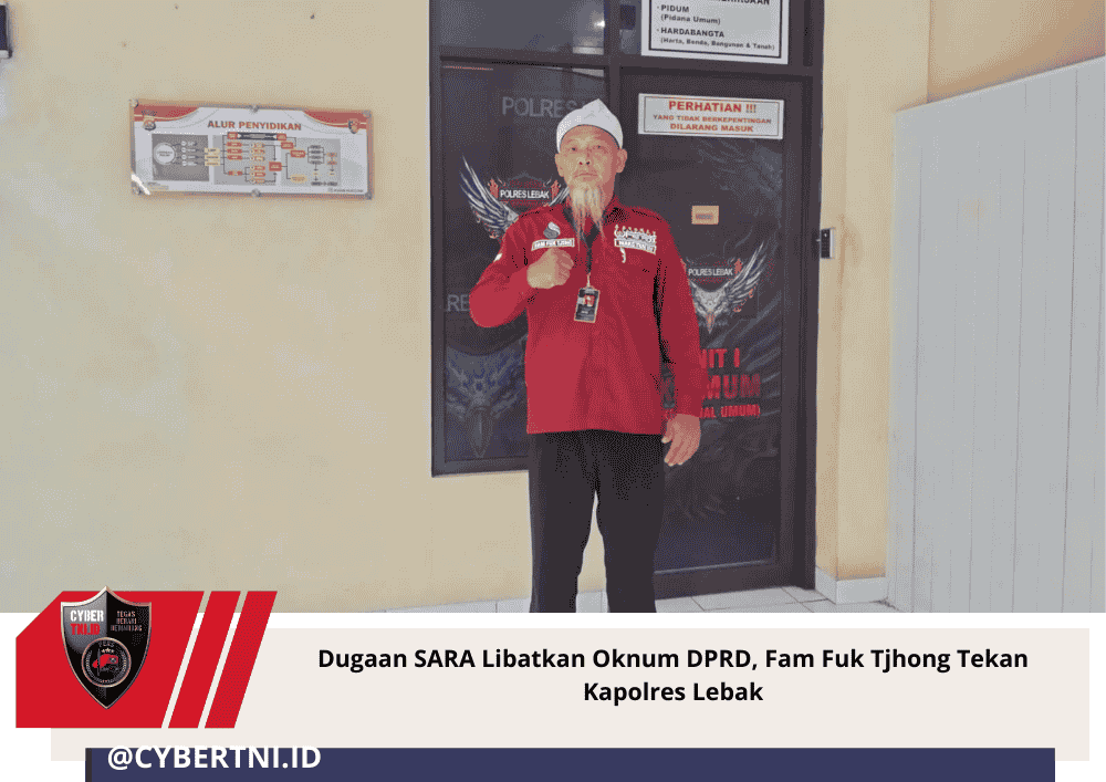 CyberTNI.id | Lebak – Penanganan laporan dugaan ujaran kebencian bermuatan Suku, Agama, Ras, dan Antargolongan (SARA) yang dilaporkan Fam Fuk Tjhong terhadap Oknum anggota DPRD Kabupaten Lebak dinilai berjalan lamban. Atas kondisi tersebut, Fam Fuk Tjhong mendatangi Polres Lebak, Selasa (6/1/2026), guna mendesak Kapolres Lebak agar segera mengambil langkah hukum tegas.