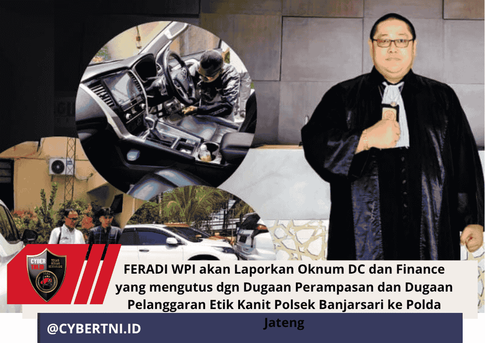 CyberTNI.id |Surakarta, 16 Oktober 2025 — Perkembangan terbaru kasus dugaan perampasan kendaraan yang melibatkan oknum debt collector (DC) di Surakarta kini memasuki babak baru. Ketua Umum Organisasi Advokat FERADI WPI sekaligus Pimpinan Firma Hukum Subur Jaya, Adv. Donny Andretti, S.H., S.Kom., M.Kom., CMD., C.PFW., C.MDF., beserta TIM HUKUM sebagai Lawyer Keluarga Korban Perampasan 1 Unit Mobil Pajero Nomor Polisi AD 1346 QP, Di Jalan yang terjadi Sabtu 11 Oktober 2025 lalu, menyampaikan bahwa pihaknya bersama korban / kliennya, Muhammad Ziedan Navila, akan melakukan langkah hukum ke Polda Jawa Tengah.