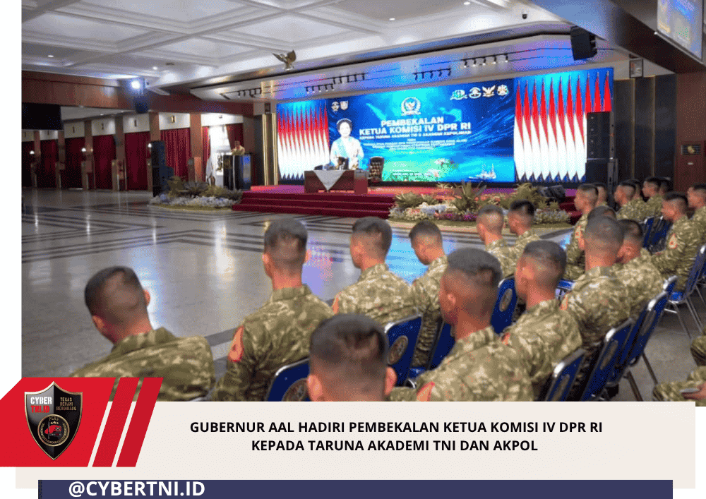 CyberTNI.id | Magelang, 23 April 2026 — Gubernur Akademi Angkatan Laut (AAL) Laksda TNI Sigit Santoso menghadiri kegiatan kunjungan Ketua Komisi IV DPR RI, Ibu Siti Hediati Soeharto, S.E., beserta anggota dan staf dalam rangka memberikan pembekalan kepada Taruna Akademi TNI Tingkat III yang hadir secara tatap muka dan Taruna Akademi Kepolisian Tingkat III yang hadir melalui vicon bertempat di Gedung Moch. Lily Rochli, Akademi Militer, Magelang, Kamis (23/4).