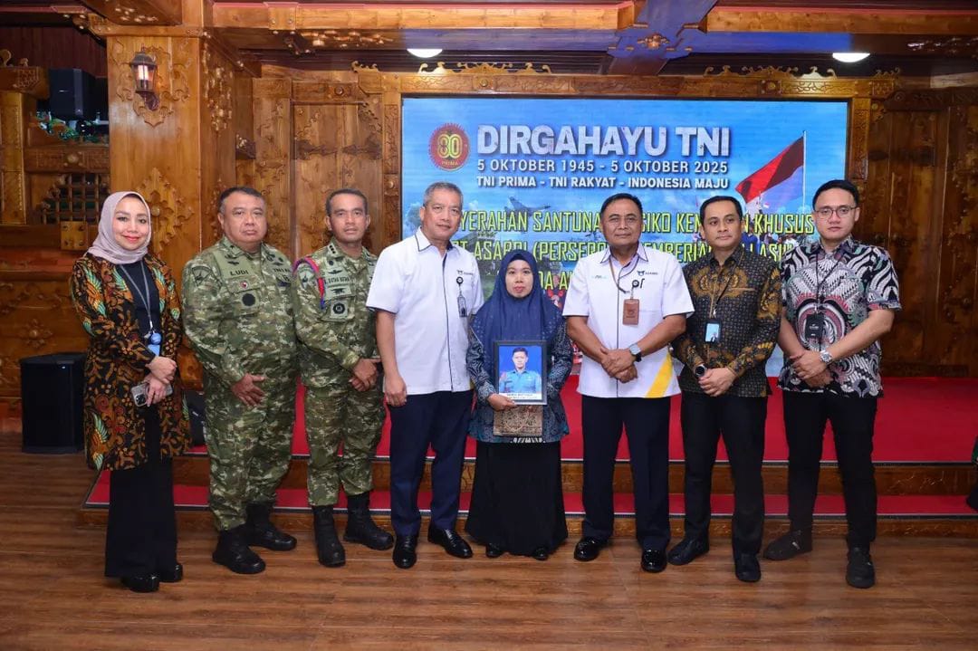 CyberTNI.id | Jakarta, Kamis 9 Oktober 2025 — Panglima TNI Jenderal TNI Agus Subiyanto, S.E., M.Si., yang diwakili oleh Inspektur Jenderal TNI (Irjen TNI) Laksamana Madya TNI Hersan, S.H., M.Si., didampingi Inspektur Jenderal TNI Kementerian Pertahanan Letjen TNI Rui F.G.P. Duarte, dan selaku Komisaris Utama PT. Asabri (Persero), bersama Bapak Jefry Haryadi P. Manulang Direktur Utama PT. Asabri (Persero), menyerahkan Santunan Risiko Kematian Khusus dan Tali Asih kepada ahli waris Prajurit TNI yang gugur dalam tugas. Kegiatan ini dilaksanakan di Aula Gatot Soebroto, Markas Besar TNI, Cilangkap, Jakarta Timur, Kamis (09/10/2025).