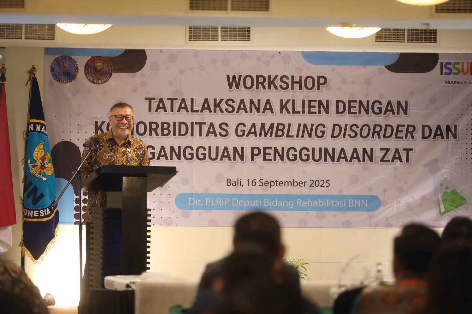 CyberTNI.id | Bali , Selasa 16 September 2025 — Masih dalam rangkaian ISSUP Regional Conference 2025, Badan Narkotika Nasional (BNN) melalui Deputi Bidang Rehabilitasi menyelenggarakan kegiatan workshop dengan mengangkat tema Tatalaksana Klien dengan Komorbiditas Gambling Disorder dan Gangguan Penggunaan Zat, di Hotel Aston, Kuta, Bali, pada Selasa (16/9).