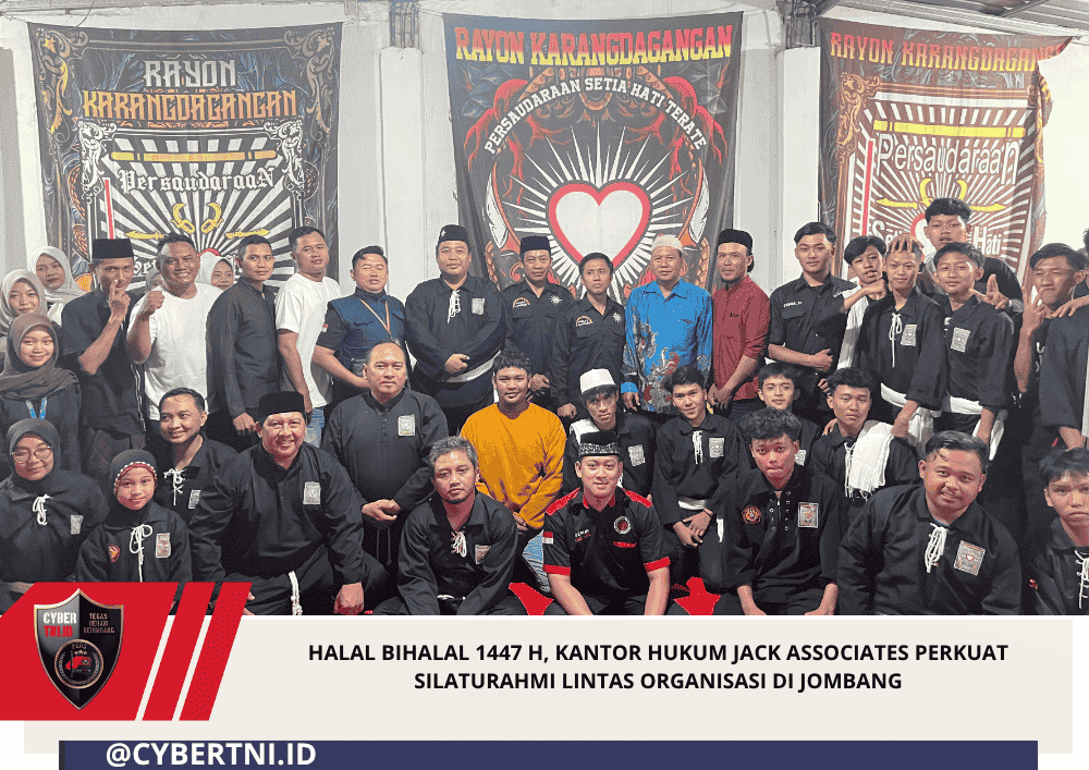 CyberTNI.id | JOMBANG – Hallal Bihallal Keluarga besar Kantor Hukum Jack Associates bersama sejumlah organisasi menggelar acara Halal Bihalal 1447 Hijriah di Perum KD Asri, Desa Karangdagangan, Kecamatan Bandar Kedungmulyo, Kabupaten Jombang, Selasa (7/4/2026).