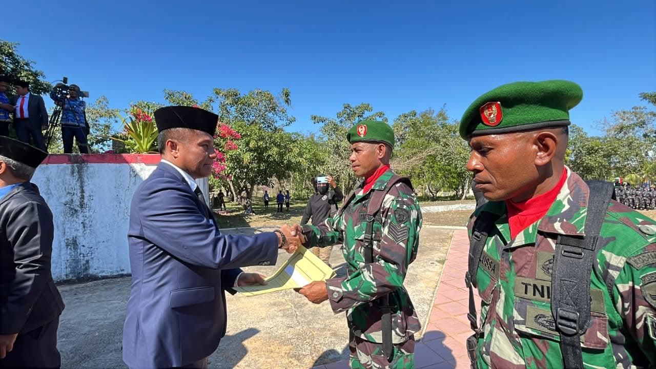 CyberTNI.id | Rote Ndao, Rabu 01 Oktober 2025 – Dalam rangkaian upacara Hari Kesaktian Pancasila yang berlangsung di lapangan Kantor Bupati Rote Ndao pada Rabu (1/10/2025), Komandan Kodim 1627/Rote Ndao, Letkol Kav. Kurnia Santiadi Wicaksono, S.H., memberikan penghargaan kepada Babinsa yang berprestasi. Penghargaan ini merupakan bentuk apresiasi pimpinan terhadap dedikasi serta kontribusi nyata anggota dalam melaksanakan tugas.