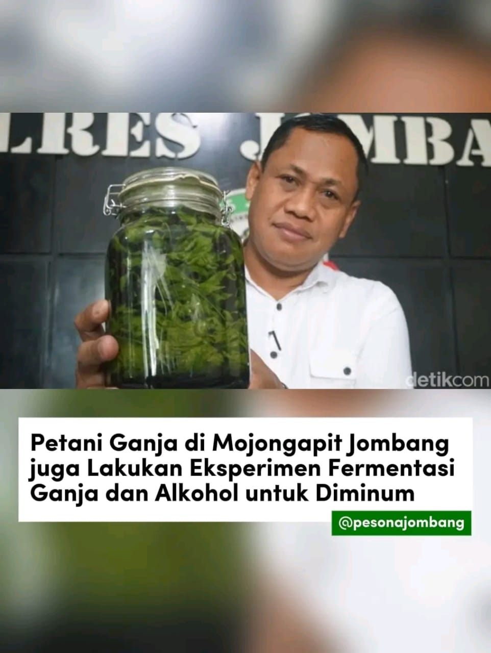 Oleh sebab itu, polisi menemukan setidaknya 4 toples berisi fermentasi daun ganja di rumah kontrakan Jalan Pakubuwono, Dusun Mojongapit, RT 4 RW 2. Ternyata toples-toples ini berisi daun ganja yang direndam dengan alkohol medis kadar 96%.