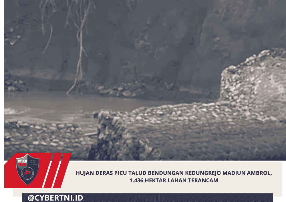 CyberTNI.id | MADIUN,Selasa (31/3/2026) —Hujan deras yang mengguyur daerah Kabupaten Madiun dalam beberapa hari terakhir menyebabkan talud Bendungan Kedungrejo Ambrol di Kecamatan Pilangkenceng Kabupaten Madiun Provinsi Jawa timur.