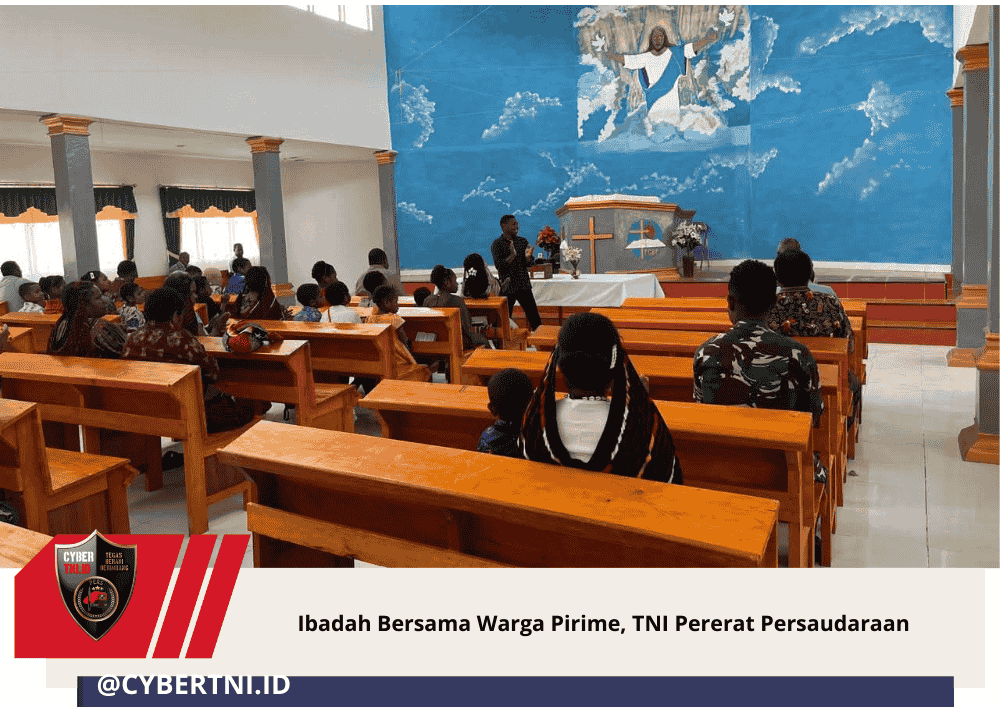 CyberTNI.id | Lanny Jaya ~ Upaya membangun kedekatan emosional dan hubungan sosial yang harmonis dengan masyarakat terus dilakukan Satgas Pamtas Kewilayahan Yonif 511/Dibyatara Yodha. Salah satunya melalui kegiatan ibadah bersama masyarakat di Gereja Baptis Wiyaware, Kampung Bagumbak, Distrik Pirime, Kabupaten Lanny Jaya, Minggu (11/01/2026).